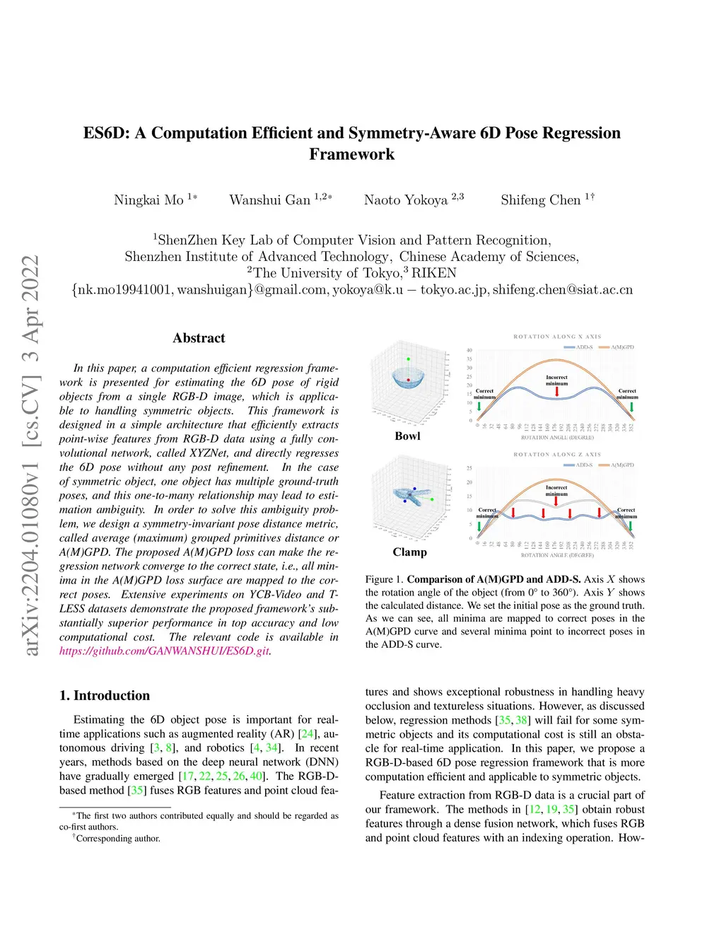 ES6D: A Computation Efficient and Symmetry-Aware 6D Pose Regression