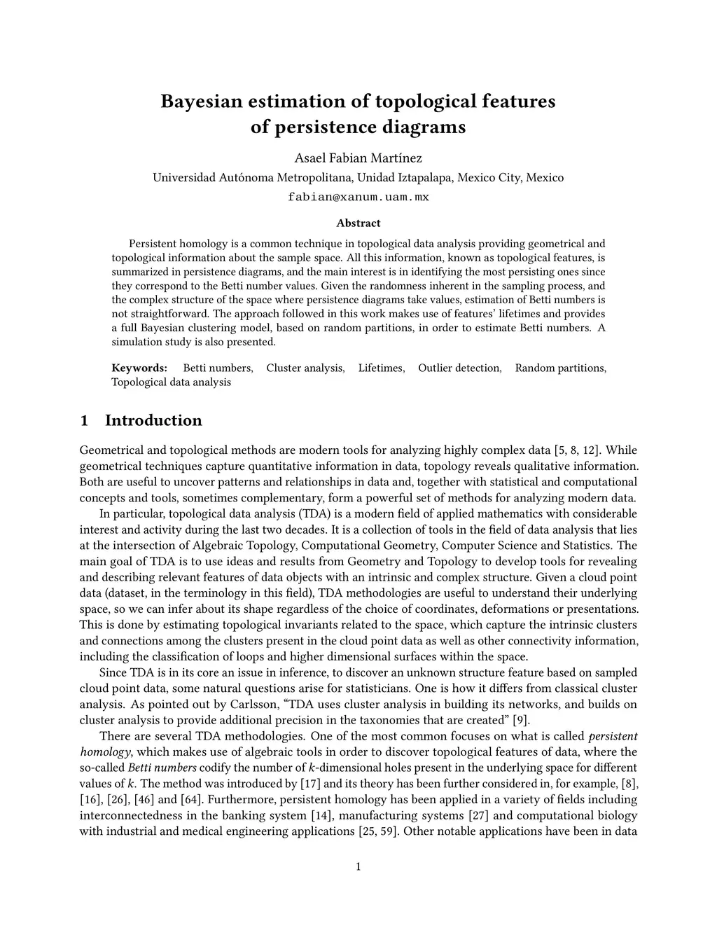 Persistent homology is a common technique in topological data analysis providing geometrical and topological information about the sample space. All this information, known as topological features, is summarized in persistence diagrams, and the main interest is in identifying the most persisting ones since they correspond to the Betti number values. Given the randomness inherent in the sampling process, and the complex structure of the space where persistence diagrams take values, estimation of Betti numbers is not straightforward. The approach followed in this work makes use of features' lifetimes and provides a full Bayesian clustering model, based on random partitions, in order to estimate Betti numbers. A simulation study is also presented.