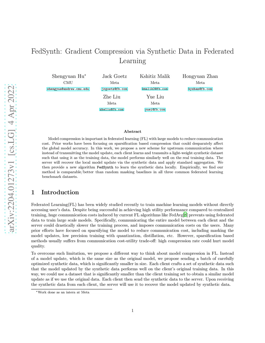 FedSynth: Gradient Compression via Synthetic Data in Federated Learning