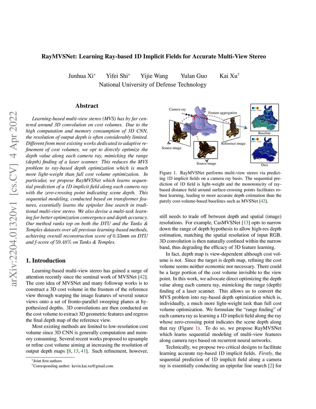 RayMVSNet: Learning Ray-based 1D Implicit Fields for Accurate Multi-View