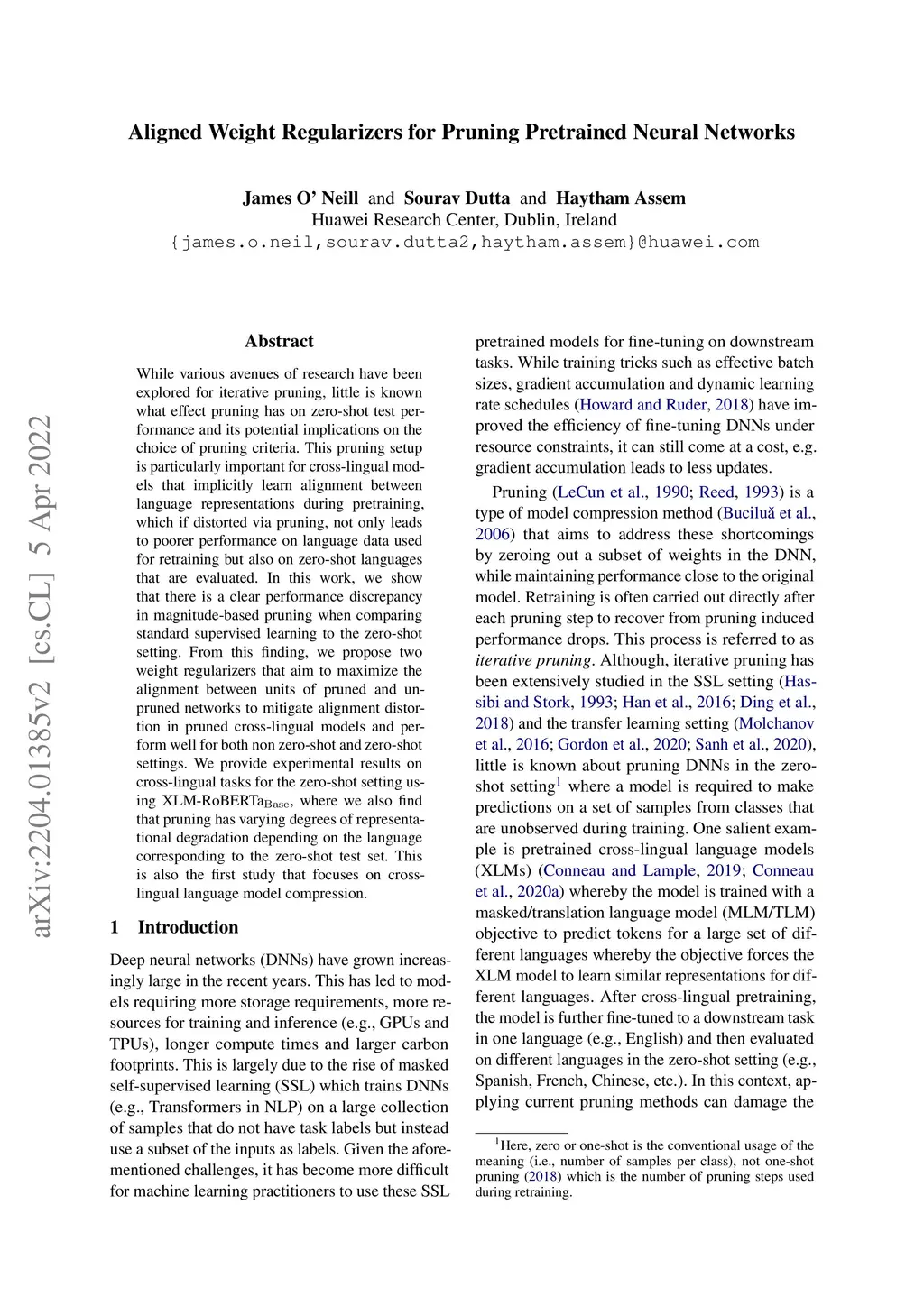 While various avenues of research have been explored for iterative pruning, little is known what effect pruning has on zero-shot test performance and its potential implications on the choice of pruning criteria. This pruning setup is particularly important for cross-lingual models that implicitly learn alignment between language representations during pretraining, which if distorted via pruning, not only leads to poorer performance on language data used for retraining but also on zero-shot languages that are evaluated. In this work, we show that there is a clear performance discrepancy in magnitude-based pruning when comparing standard supervised learning to the zero-shot setting. From this finding, we propose two weight regularizers that aim to maximize the alignment between units of pruned and unpruned networks to mitigate alignment distortion in pruned cross-lingual models and perform well for both non zero-shot and zero-shot settings. We provide experimental results on cross-lingual tasks for the zero-shot setting using XLM-RoBERTa, where we also find that pruning has varying degrees of representational degradation depending on the language corresponding to the zero-shot test set. This is also the first study that focuses on cross-lingual language model compression.