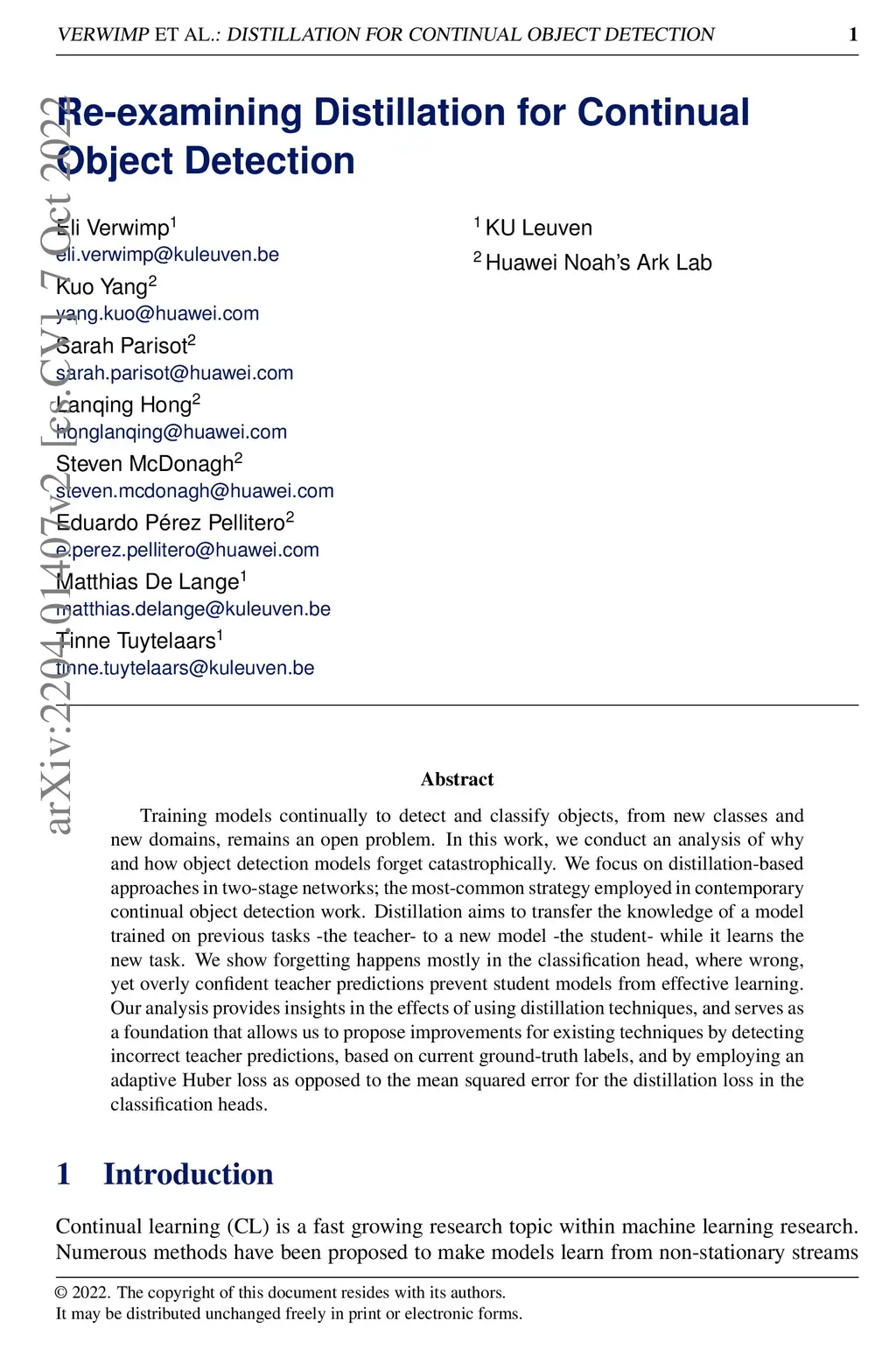 Training models continually to detect and classify objects, from new classes and new domains, remains an open problem. In this work, we conduct a thorough analysis of why and how object detection models forget catastrophically. We focus on distillation-based approaches in two-stage networks; the most-common strategy employed in contemporary continual object detection work.Distillation aims to transfer the knowledge of a model trained on previous tasks -- the teacher -- to a new model -- the student -- while it learns the new task. We show that this works well for the region proposal network, but that wrong, yet overly confident teacher predictions prevent student models from effective learning of the classification head. Our analysis provides a foundation that allows us to propose improvements for existing techniques by detecting incorrect teacher predictions, based on current ground-truth labels, and by employing an adaptive Huber loss as opposed to the mean squared error for the distillation loss in the classification heads. We evidence that our strategy works not only in a class incremental setting, but also in domain incremental settings, which constitute a realistic context, likely to be the setting of representative real-world problems.
