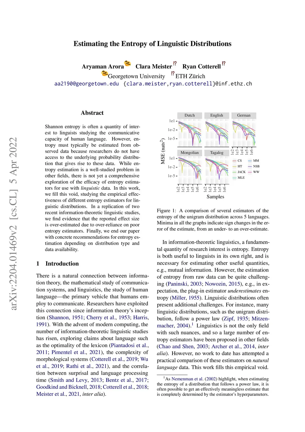 Shannon entropy is often a quantity of interest to linguists studying the communicative capacity of human language. However, entropy must typically be estimated from observed data because researchers do not have access to the underlying probability distribution that gives rise to these data. While entropy estimation is a well-studied problem in other fields, there is not yet a comprehensive exploration of the efficacy of entropy estimators for use with linguistic data. In this work, we fill this void, studying the empirical effectiveness of different entropy estimators for linguistic distributions. In a replication of two recent information-theoretic linguistic studies, we find evidence that the reported effect size is over-estimated due to over-reliance on poor entropy estimators. Finally, we end our paper with concrete recommendations for entropy estimation depending on distribution type and data availability.