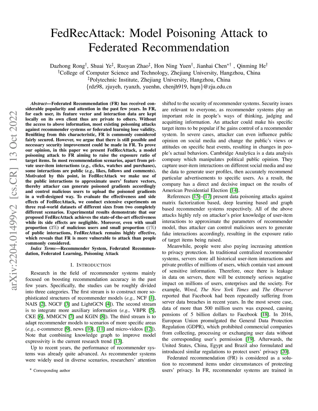 FedRecAttack: Model Poisoning Attack to Federated Recommendation
