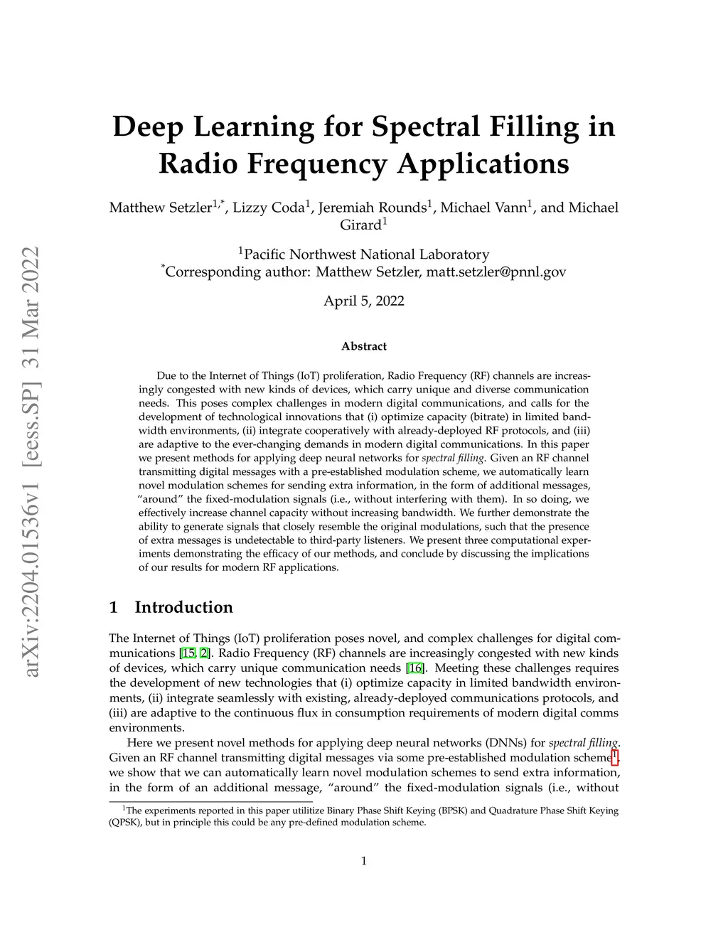 Due to the Internet of Things (IoT) proliferation, Radio Frequency (RF) channels are increasingly congested with new kinds of devices, which carry unique and diverse communication needs. This poses complex challenges in modern digital communications, and calls for the development of technological innovations that (i) optimize capacity (bitrate) in limited bandwidth environments, (ii) integrate cooperatively with already-deployed RF protocols, and (iii) are adaptive to the ever-changing demands in modern digital communications. In this paper we present methods for applying deep neural networks for spectral filling. Given an RF channel transmitting digital messages with a pre-established modulation scheme, we automatically learn novel modulation schemes for sending extra information, in the form of additional messages, "around" the fixed-modulation signals (i.e., without interfering with them). In so doing, we effectively increase channel capacity without increasing bandwidth. We further demonstrate the ability to generate signals that closely resemble the original modulations, such that the presence of extra messages is undetectable to third-party listeners. We present three computational experiments demonstrating the efficacy of our methods, and conclude by discussing the implications of our results for modern RF applications.