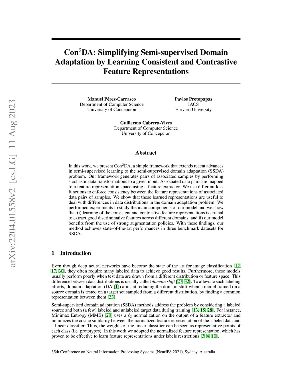 Con2^{2}DA: Simplifying Semi-supervised Domain Adaptation by Learning Consistent and Contrastive Feature Representations