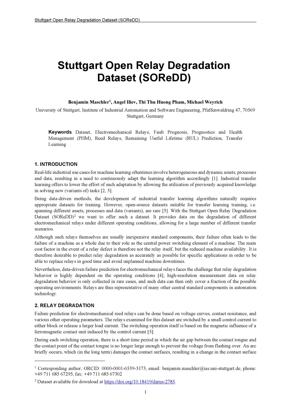 Stuttgart Open Relay Degradation Dataset (SOReDD)