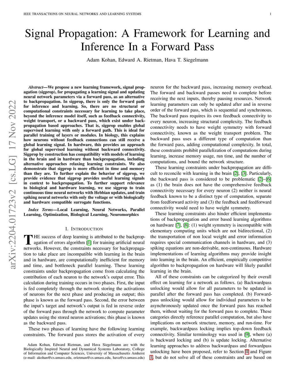 Signal Propagation: A Framework for Learning and Inference In a Forward