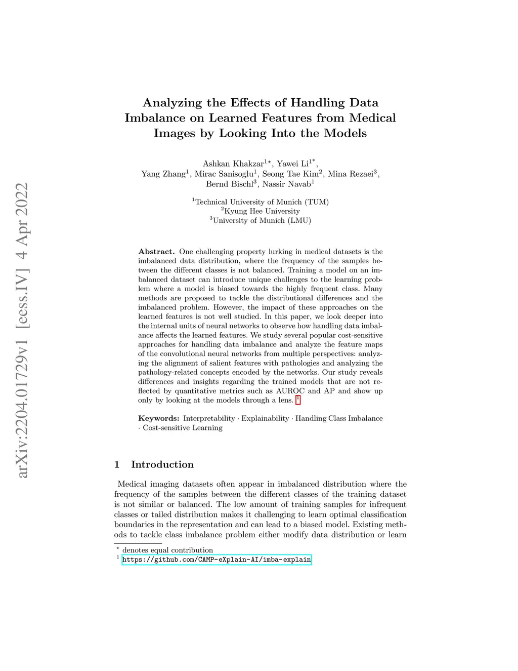 One challenging property lurking in medical datasets is the imbalanced data distribution, where the frequency of the samples between the different classes is not balanced. Training a model on an imbalanced dataset can introduce unique challenges to the learning problem where a model is biased towards the highly frequent class. Many methods are proposed to tackle the distributional differences and the imbalanced problem. However, the impact of these approaches on the learned features is not well studied. In this paper, we look deeper into the internal units of neural networks to observe how handling data imbalance affects the learned features. We study several popular cost-sensitive approaches for handling data imbalance and analyze the feature maps of the convolutional neural networks from multiple perspectives: analyzing the alignment of salient features with pathologies and analyzing the pathology-related concepts encoded by the networks. Our study reveals differences and insights regarding the trained models that are not reflected by quantitative metrics such as AUROC and AP and show up only by looking at the models through a lens.