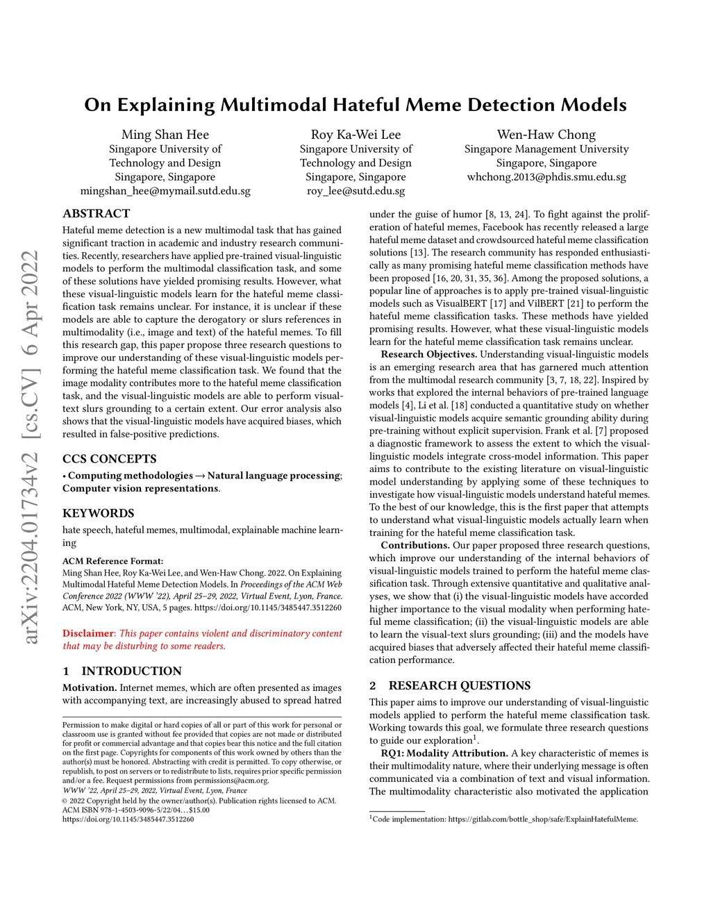 On Explaining Multimodal Hateful Meme Detection Models