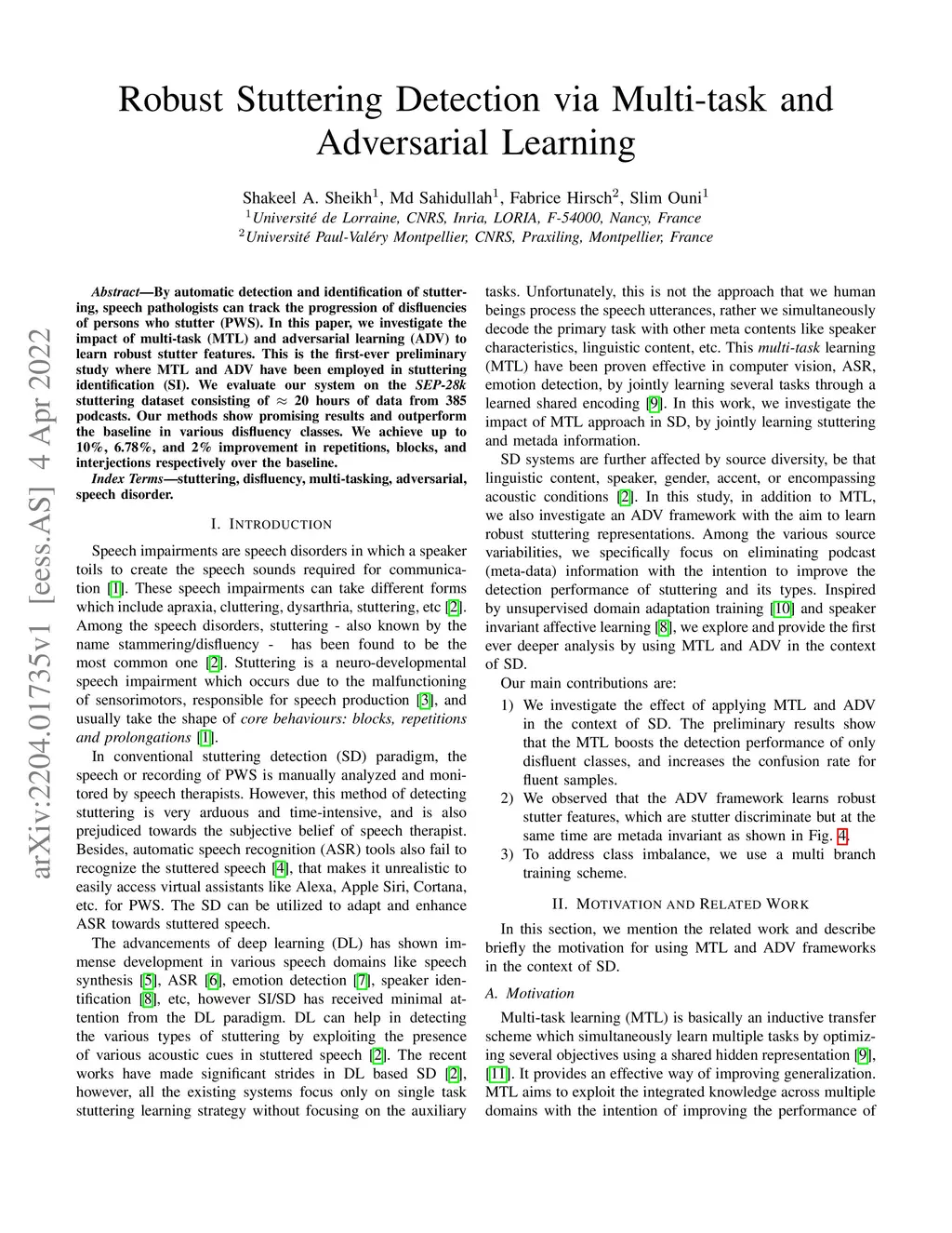 Robust Stuttering Detection via Multi-task and Adversarial Learning