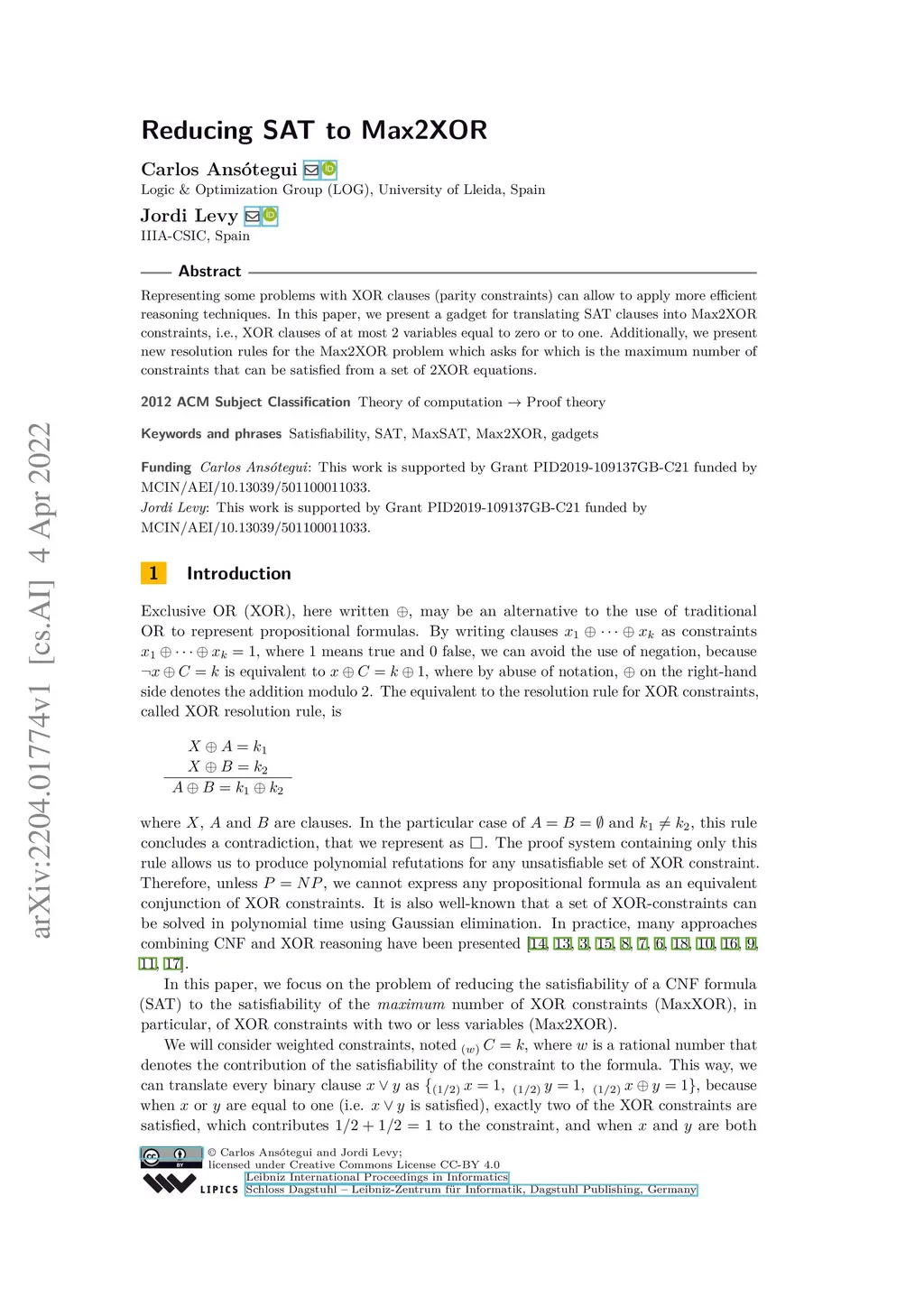 Representing some problems with XOR clauses (parity constraints) can allow to apply more efficient reasoning techniques. In this paper, we present a gadget for translating SAT clauses into Max2XOR constraints, i.e., XOR clauses of at most 2 variables equal to zero or to one. Additionally, we present new resolution rules for the Max2XOR problem which asks for which is the maximum number of constraints that can be satisfied from a set of 2XOR equations.