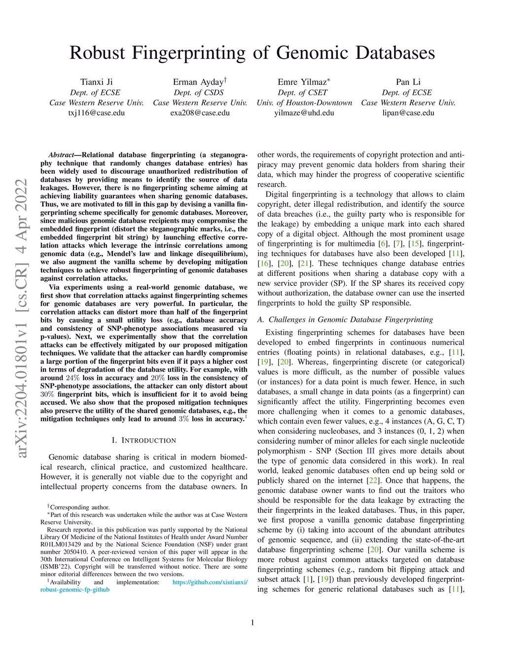 Robust Fingerprinting of Genomic Databases