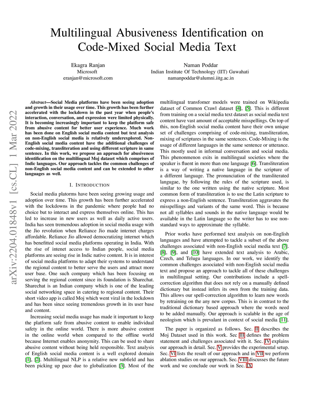 Social Media platforms have been seeing adoption and growth in their usage over time. This growth has been further accelerated with the lockdown in the past year when people's interaction, conversation, and expression were limited physically. It is becoming increasingly important to keep the platform safe from abusive content for better user experience. Much work has been done on English social media content but text analysis on non-English social media is relatively underexplored. Non-English social media content have the additional challenges of code-mixing, transliteration and using different scripture in same sentence. In this work, we propose an approach for abusiveness identification on the multilingual Moj dataset which comprises of Indic languages. Our approach tackles the common challenges of non-English social media content and can be extended to other languages as well.