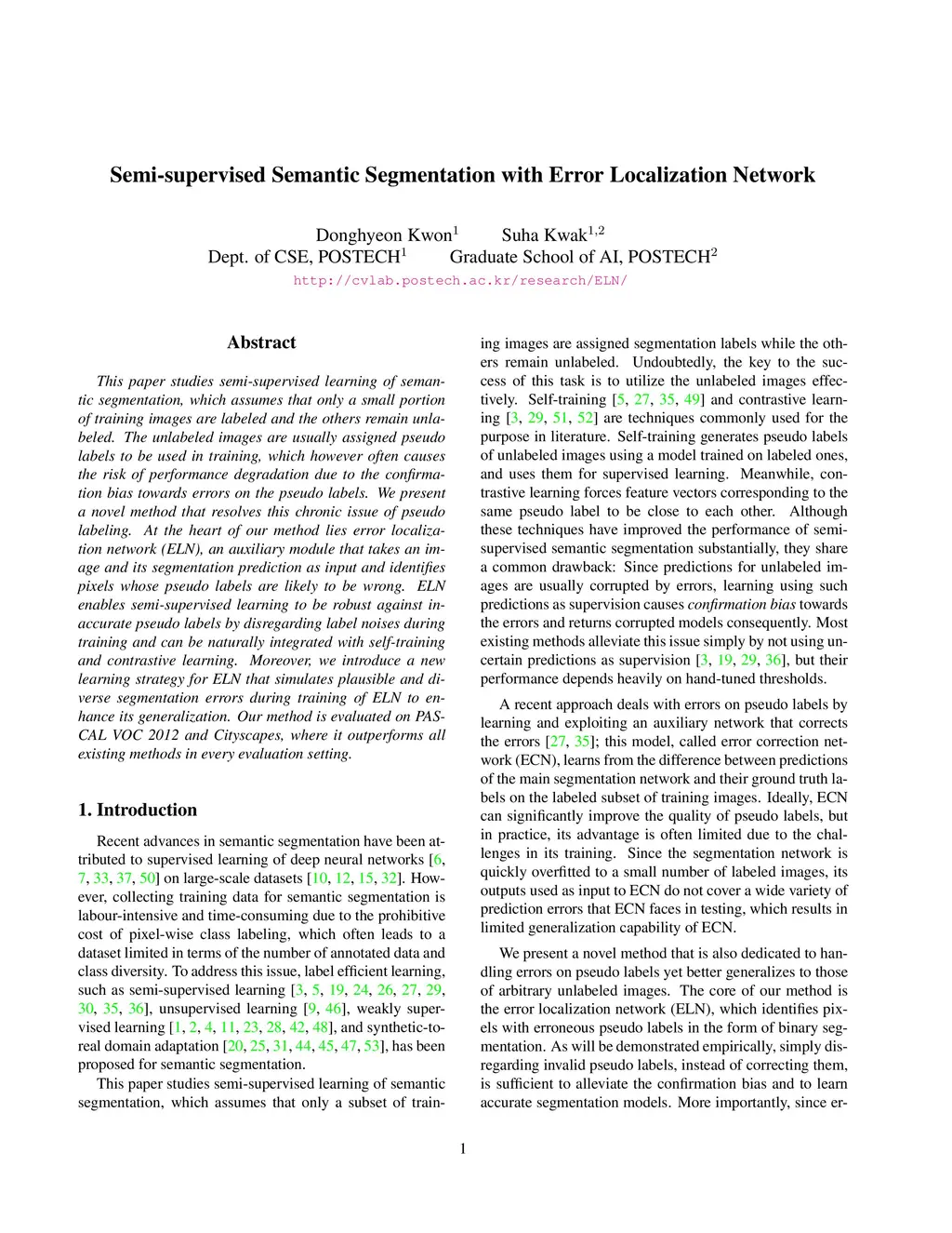 Semi-supervised Semantic Segmentation with Error Localization Network