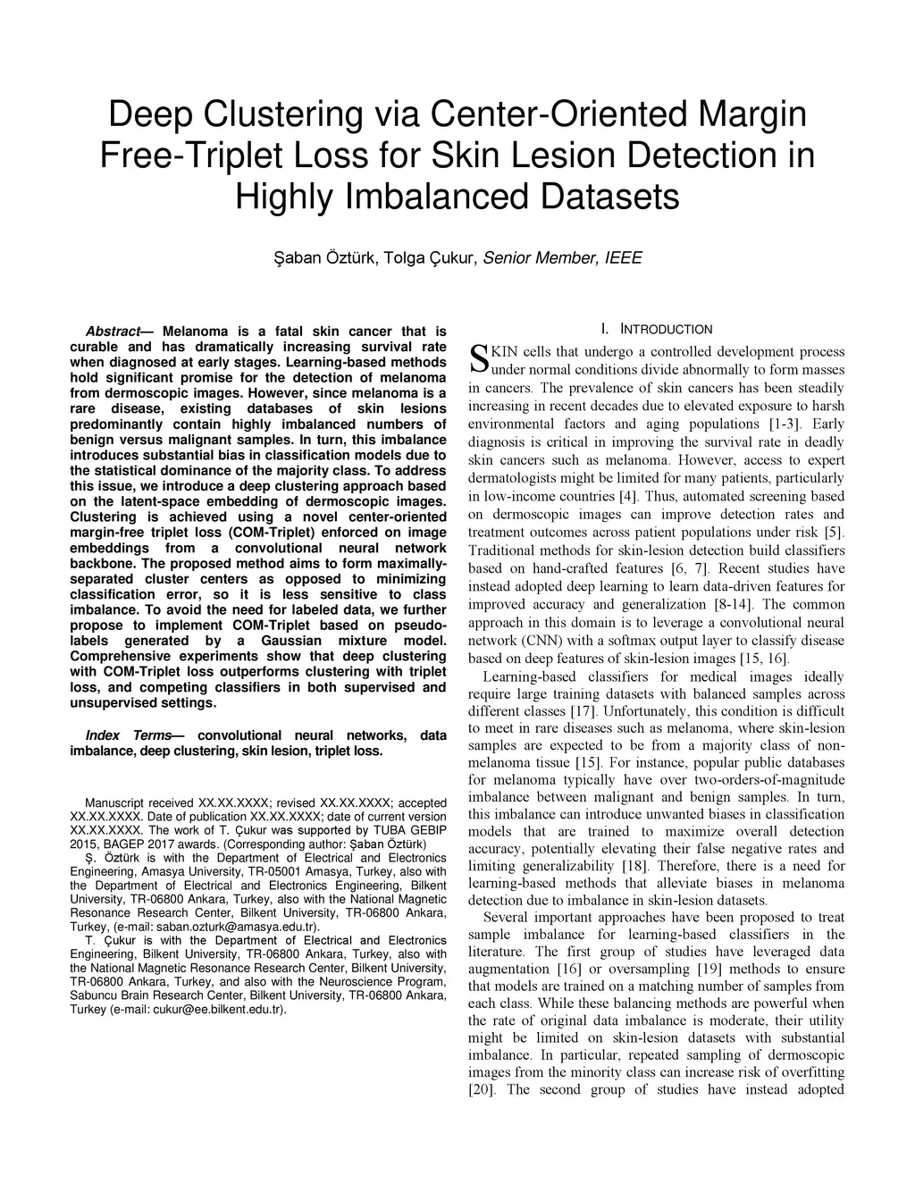 Deep Clustering via Center-Oriented Margin Free-Triplet Loss for Skin