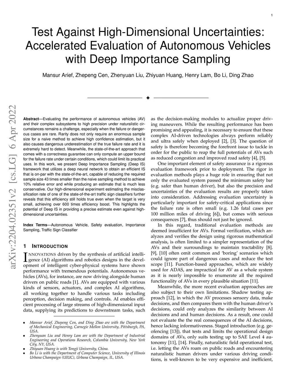 Autonomous Vehicles with Deep Importance Sampling