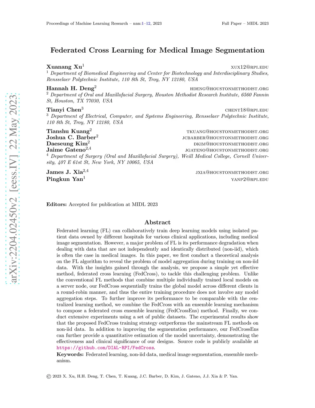 Federated Cross Learning for Medical Image Segmentation