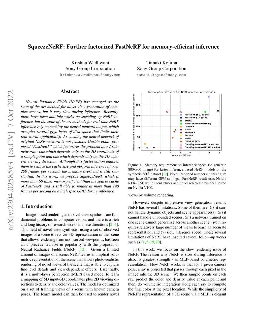 SqueezeNeRF: Further factorized FastNeRF for memory-efficient inference
