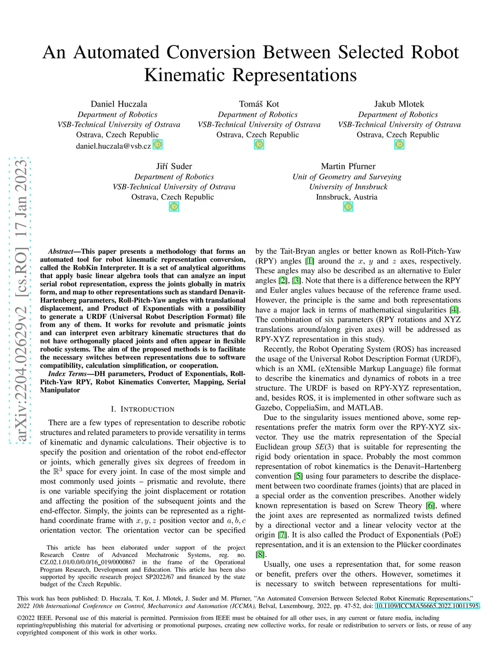 An Automated Conversion Between Selected Robot Kinematic Representations