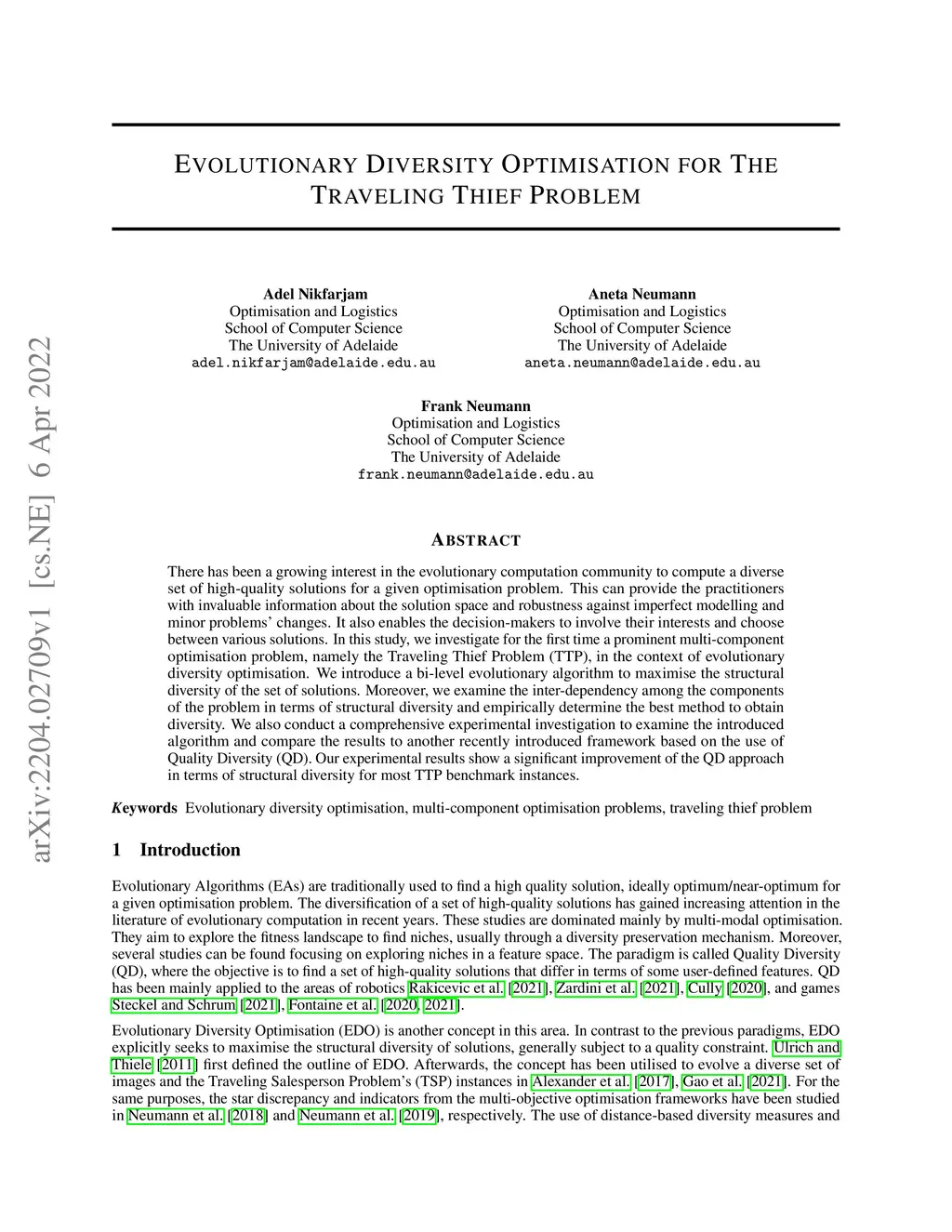Evolutionary Diversity Optimisation for The Traveling Thief Problem