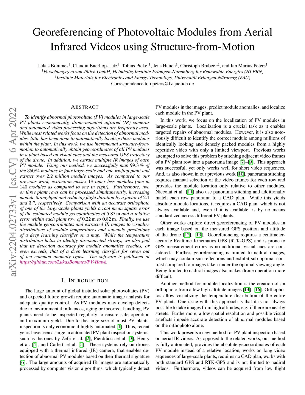 Georeferencing of Photovoltaic Modules from Aerial Infrared Videos using