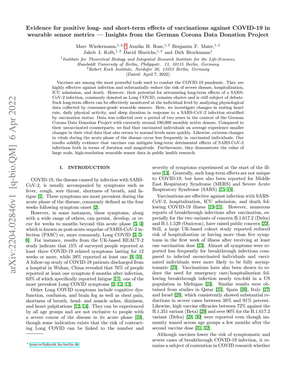 against COVID-19 in wearable sensor metrics -- Insights from the German