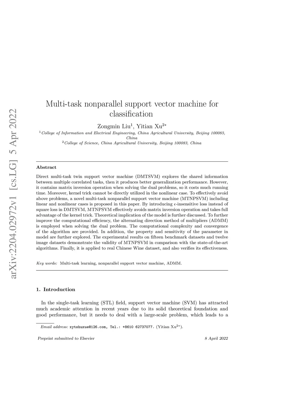 Direct multi-task twin support vector machine (DMTSVM) explores the shared information between multiple correlated tasks, then it produces better generalization performance. However, it contains matrix inversion operation when solving the dual problems, so it costs much running time. Moreover, kernel trick cannot be directly utilized in the nonlinear case. To effectively avoid above problems, a novel multi-task nonparallel support vector machine (MTNPSVM) including linear and nonlinear cases is proposed in this paper. By introducing epsilon-insensitive loss instead of square loss in DMTSVM, MTNPSVM effectively avoids matrix inversion operation and takes full advantage of the kernel trick. Theoretical implication of the model is further discussed. To further improve the computational efficiency, the alternating direction method of multipliers (ADMM) is employed when solving the dual problem. The computational complexity and convergence of the algorithm are provided. In addition, the property and sensitivity of the parameter in model are further explored. The experimental results on fifteen benchmark datasets and twelve image datasets demonstrate the validity of MTNPSVM in comparison with the state-of-the-art algorithms. Finally, it is applied to real Chinese Wine dataset, and also verifies its effectiveness.