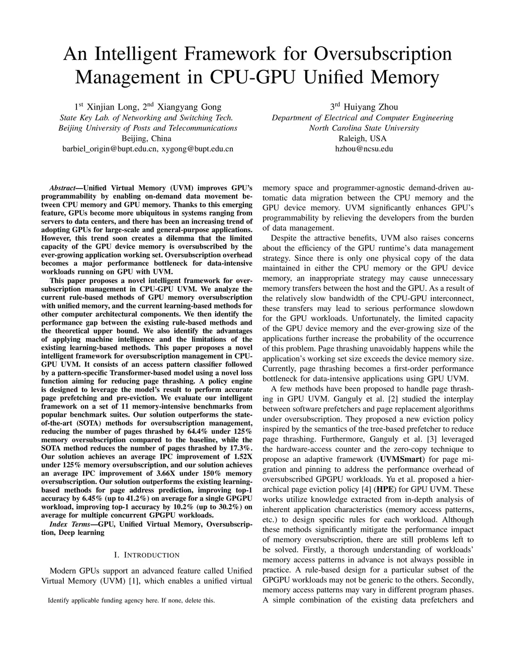 An Intelligent Framework for Oversubscription Management in CPU-GPU