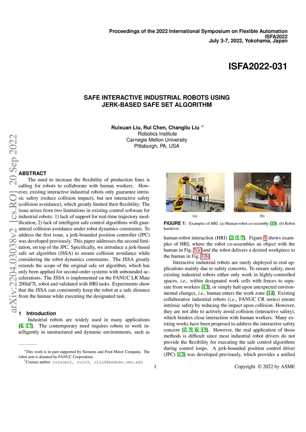 Safe Interactive Industrial Robots using Jerk-based Safe Set Algorithm