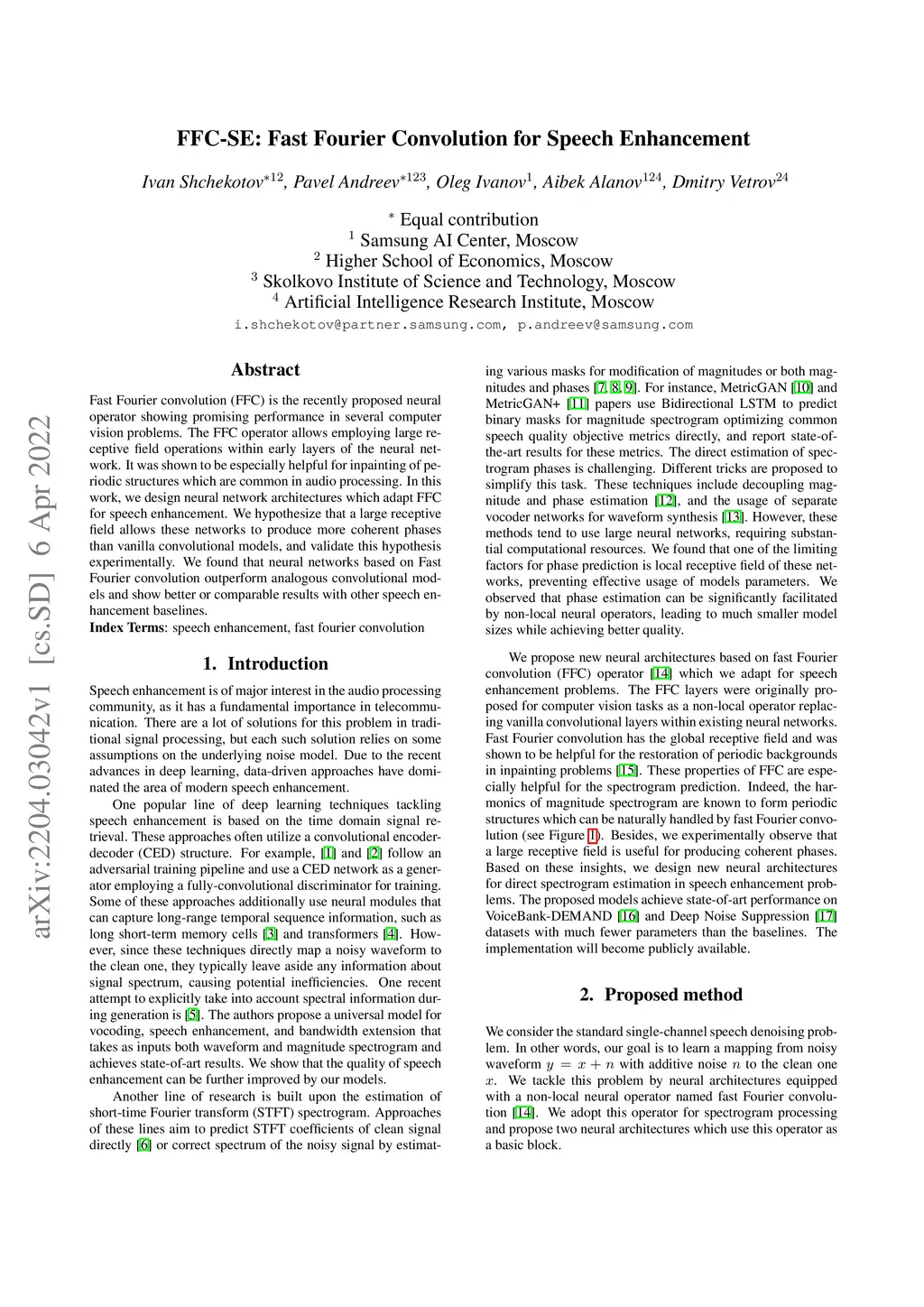 FFC-SE: Fast Fourier Convolution for Speech Enhancement