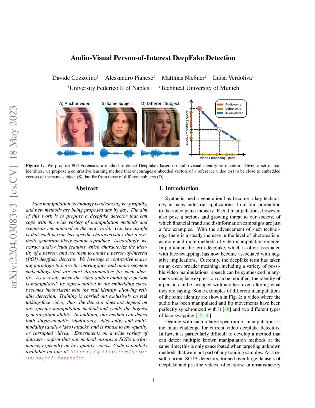 Face manipulation technology is advancing very rapidly, and new methods are being proposed day by day. The aim of this work is to propose a deepfake detector that can cope with the wide variety of manipulation methods and scenarios encountered in the real world. Our key insight is that each person has specific characteristics that a synthetic generator likely cannot reproduce. Accordingly, we extract audio-visual features which characterize the identity of a person, and use them to create a person-of-interest (POI) deepfake detector. We leverage a contrastive learning paradigm to learn the moving-face and audio segment embeddings that are most discriminative for each identity. As a result, when the video and/or audio of a person is manipulated, its representation in the embedding space becomes inconsistent with the real identity, allowing reliable detection. Training is carried out exclusively on real talking-face video; thus, the detector does not depend on any specific manipulation method and yields the highest generalization ability. In addition, our method can detect both single-modality (audio-only, video-only) and multi-modality (audio-video) attacks, and is robust to low-quality or corrupted videos. Experiments on a wide variety of datasets confirm that our method ensures a SOTA performance, especially on low quality videos. Code is publicly available on-line at https://github.com/grip-unina/poi-forensics.
