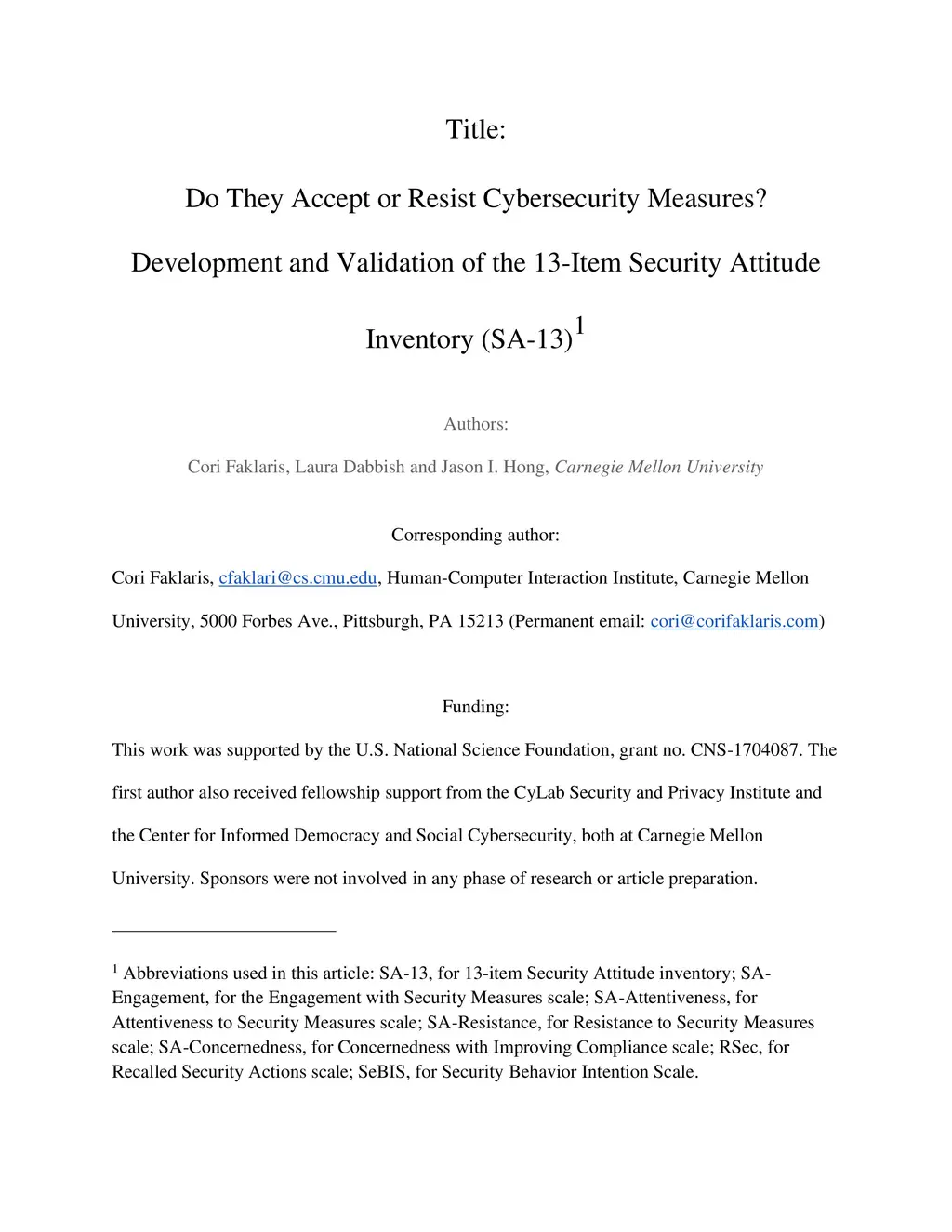 Validation of the 13-Item Security Attitude Inventory (SA-13)