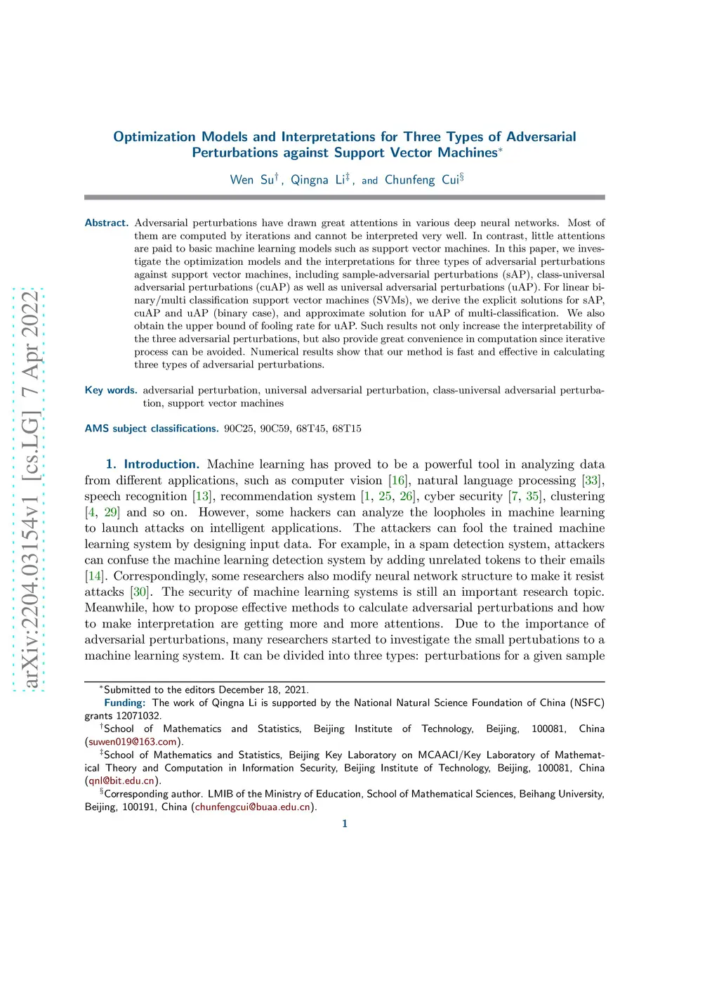 Perturbations against Support Vector Machines