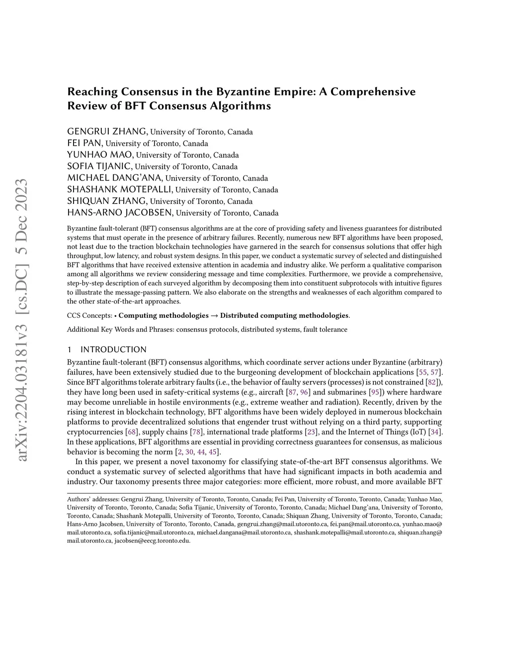 Reaching Consensus in the Byzantine Empire: A Comprehensive Review of