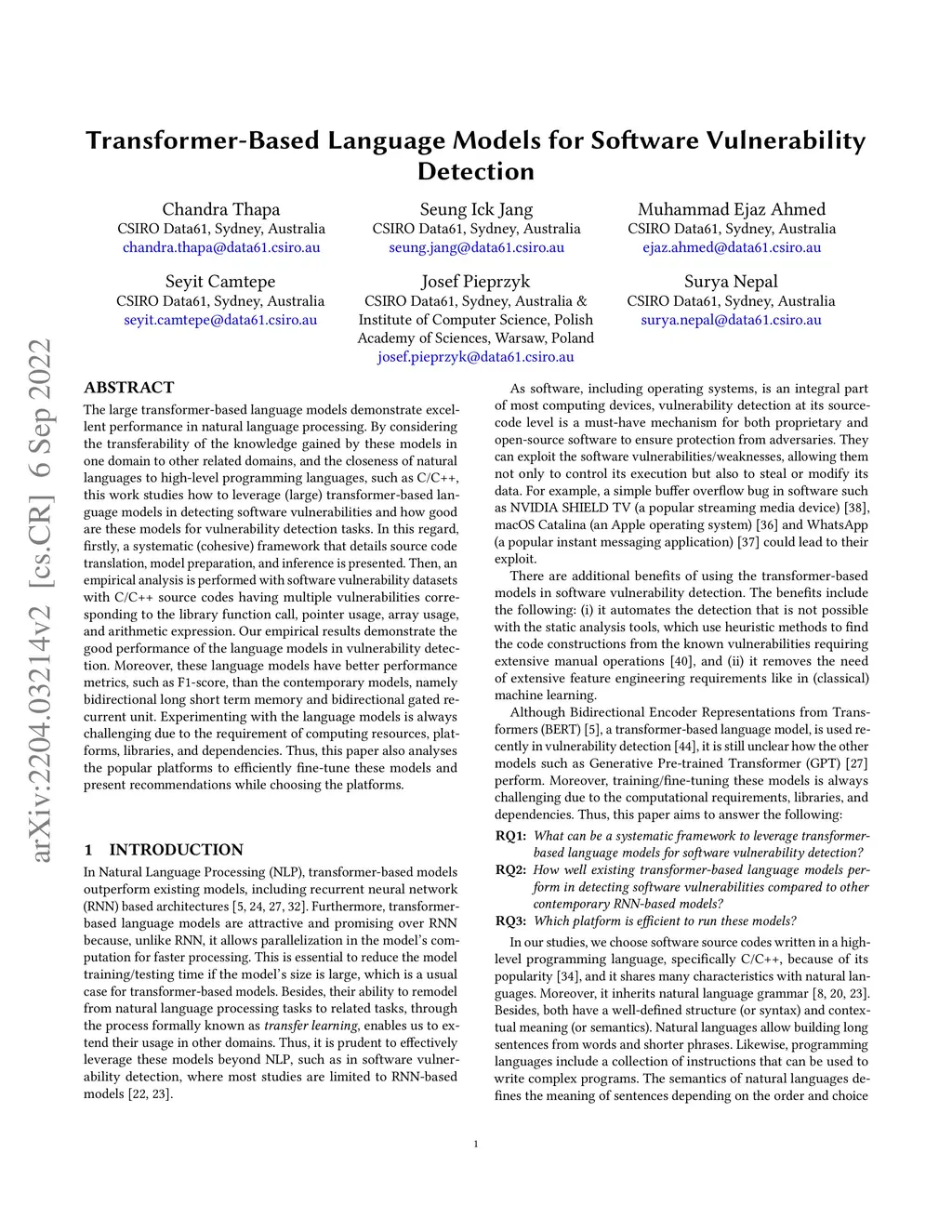 The large transformer-based language models demonstrate excellent performance in natural language processing. By considering the transferability of the knowledge gained by these models in one domain to other related domains, and the closeness of natural languages to high-level programming languages, such as C/C++, this work studies how to leverage (large) transformer-based language models in detecting software vulnerabilities and how good are these models for vulnerability detection tasks. In this regard, firstly, a systematic (cohesive) framework that details source code translation, model preparation, and inference is presented. Then, an empirical analysis is performed with software vulnerability datasets with C/C++ source codes having multiple vulnerabilities corresponding to the library function call, pointer usage, array usage, and arithmetic expression. Our empirical results demonstrate the good performance of the language models in vulnerability detection. Moreover, these language models have better performance metrics, such as F1-score, than the contemporary models, namely bidirectional long short-term memory and bidirectional gated recurrent unit. Experimenting with the language models is always challenging due to the requirement of computing resources, platforms, libraries, and dependencies. Thus, this paper also analyses the popular platforms to efficiently fine-tune these models and present recommendations while choosing the platforms.