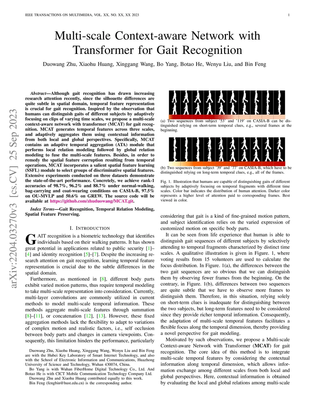 Multi-scale Context-aware Network with Transformer for Gait Recognition