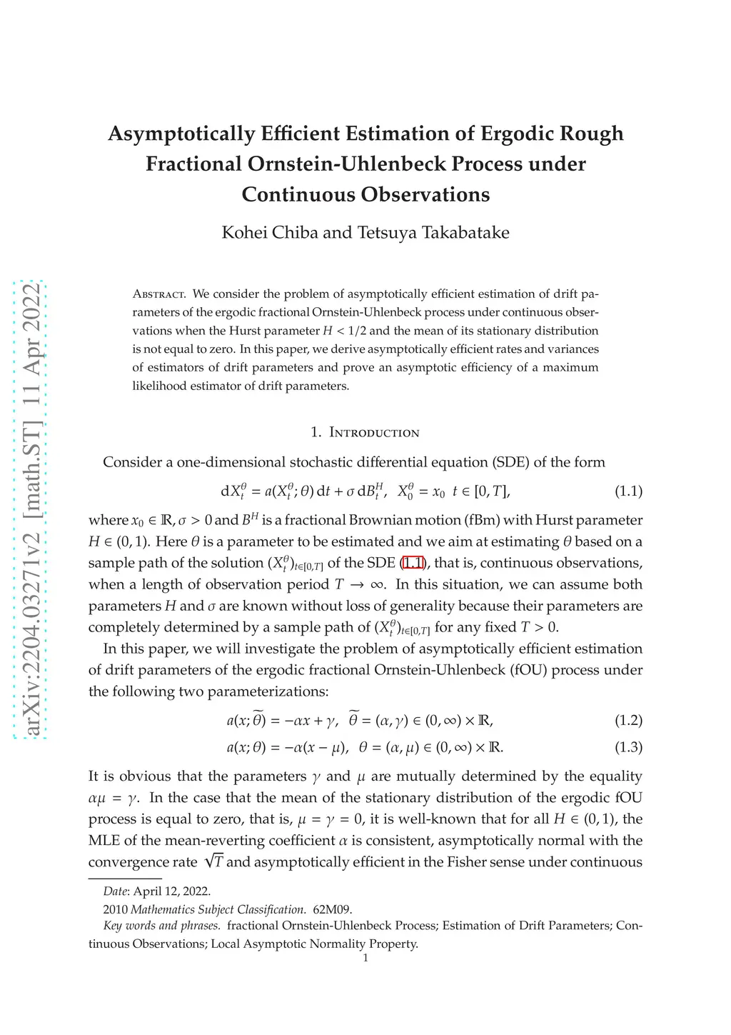 Statistical Inference for Stochastic Processes : An International Journal devoted to Time Series Analysis and the Statistics of Continuous Time Processes and Dynamical Systems (SISP), 2022