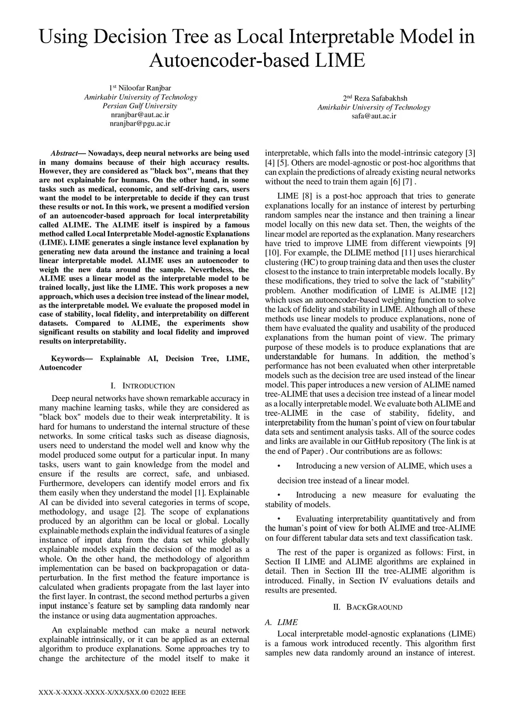 Nowadays, deep neural networks are being used in many domains because of their high accuracy results. However, they are considered as "black box", means that they are not explainable for humans. On the other hand, in some tasks such as medical, economic, and self-driving cars, users want the model to be interpretable to decide if they can trust these results or not. In this work, we present a modified version of an autoencoder-based approach for local interpretability called ALIME. The ALIME itself is inspired by a famous method called Local Interpretable Model-agnostic Explanations (LIME). LIME generates a single instance level explanation by generating new data around the instance and training a local linear interpretable model. ALIME uses an autoencoder to weigh the new data around the sample. Nevertheless, the ALIME uses a linear model as the interpretable model to be trained locally, just like the LIME. This work proposes a new approach, which uses a decision tree instead of the linear model, as the interpretable model. We evaluate the proposed model in case of stability, local fidelity, and interpretability on different datasets. Compared to ALIME, the experiments show significant results on stability and local fidelity and improved results on interpretability.