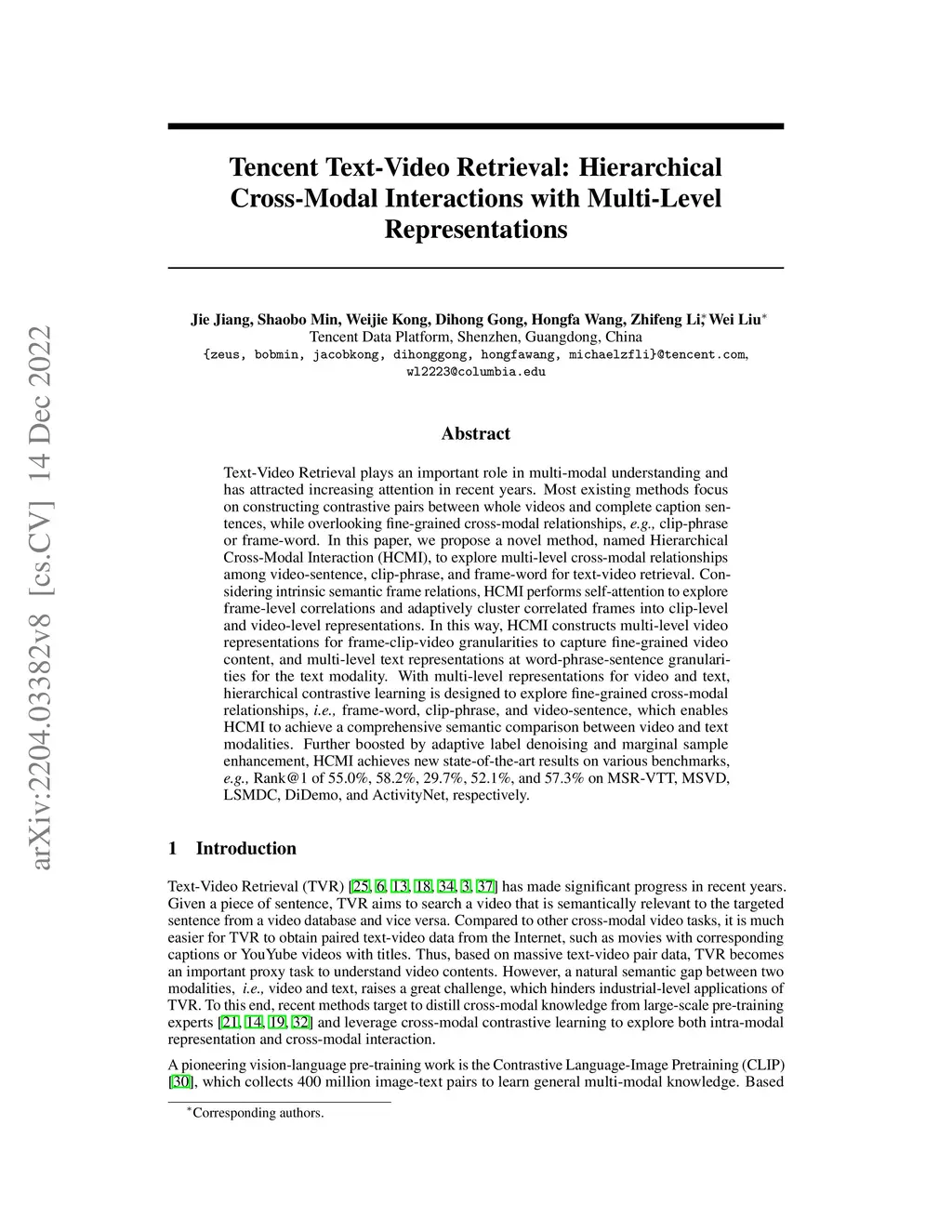 Tencent Text-Video Retrieval: Hierarchical Cross-Modal Interactions with