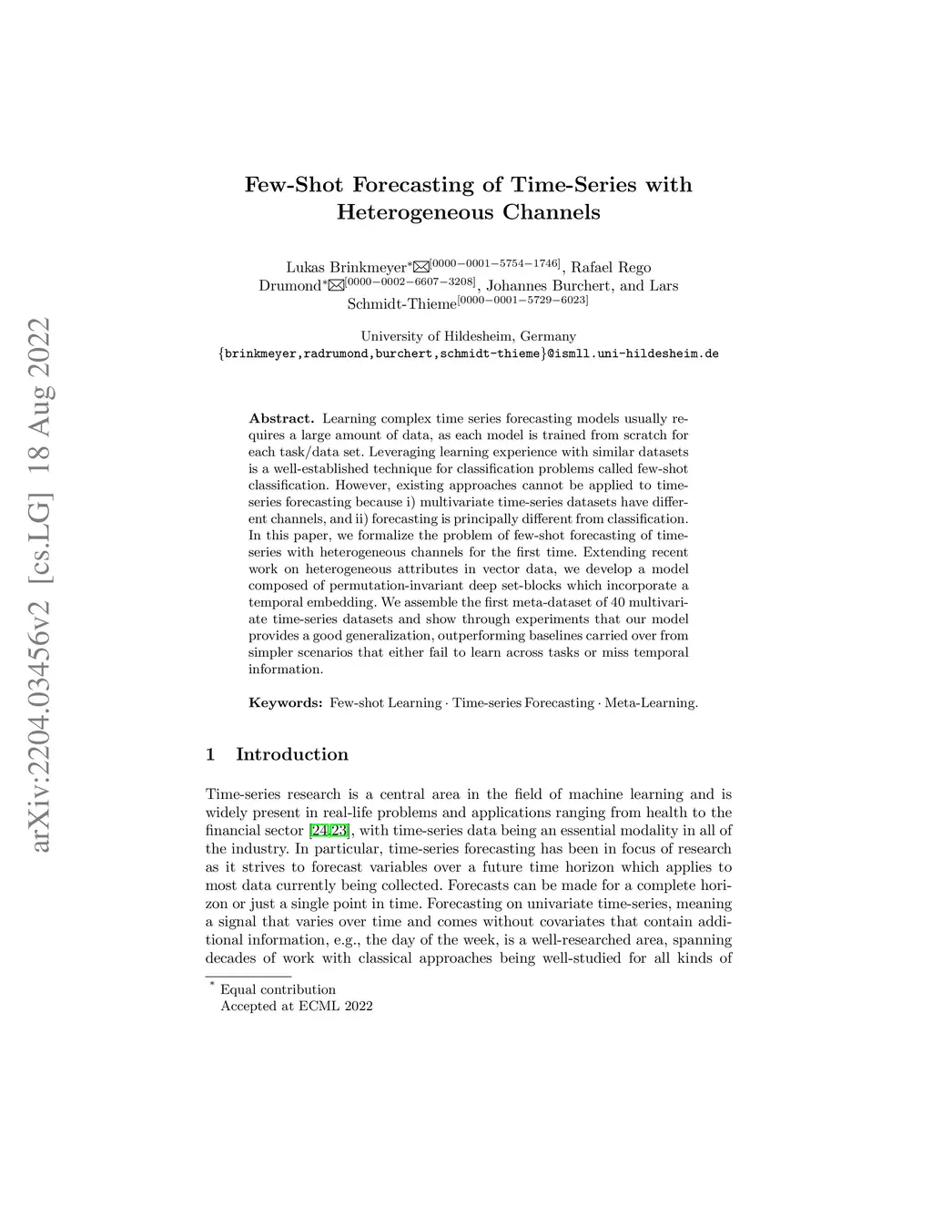 Few-Shot Forecasting of Time-Series with Heterogeneous Channels