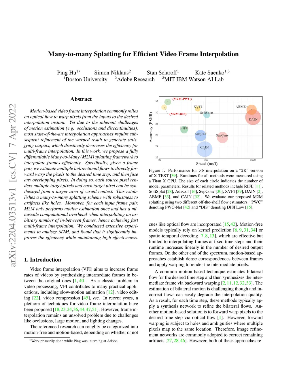 Many-to-many Splatting for Efficient Video Frame Interpolation