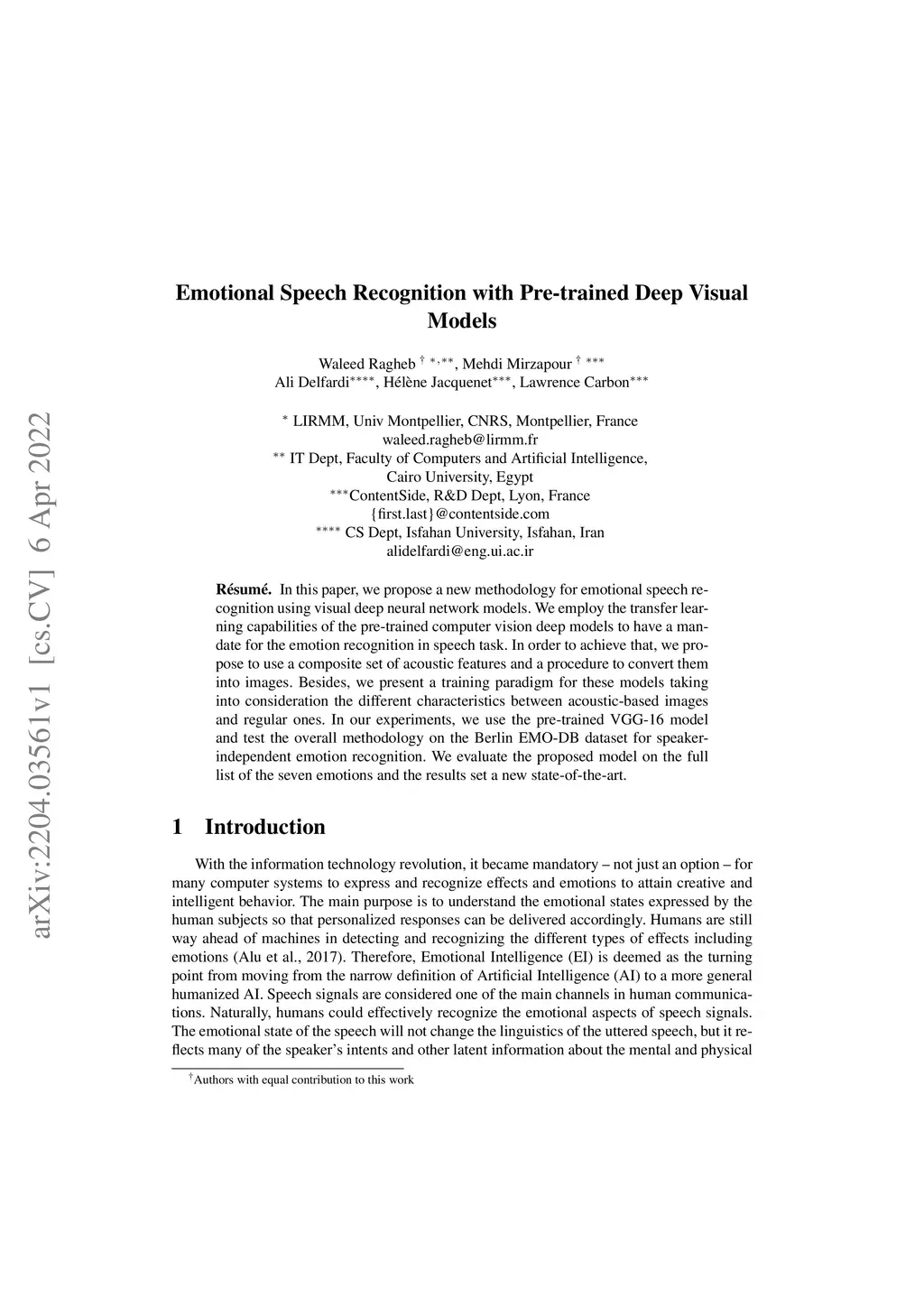 Emotional Speech Recognition with Pre-trained Deep Visual Models