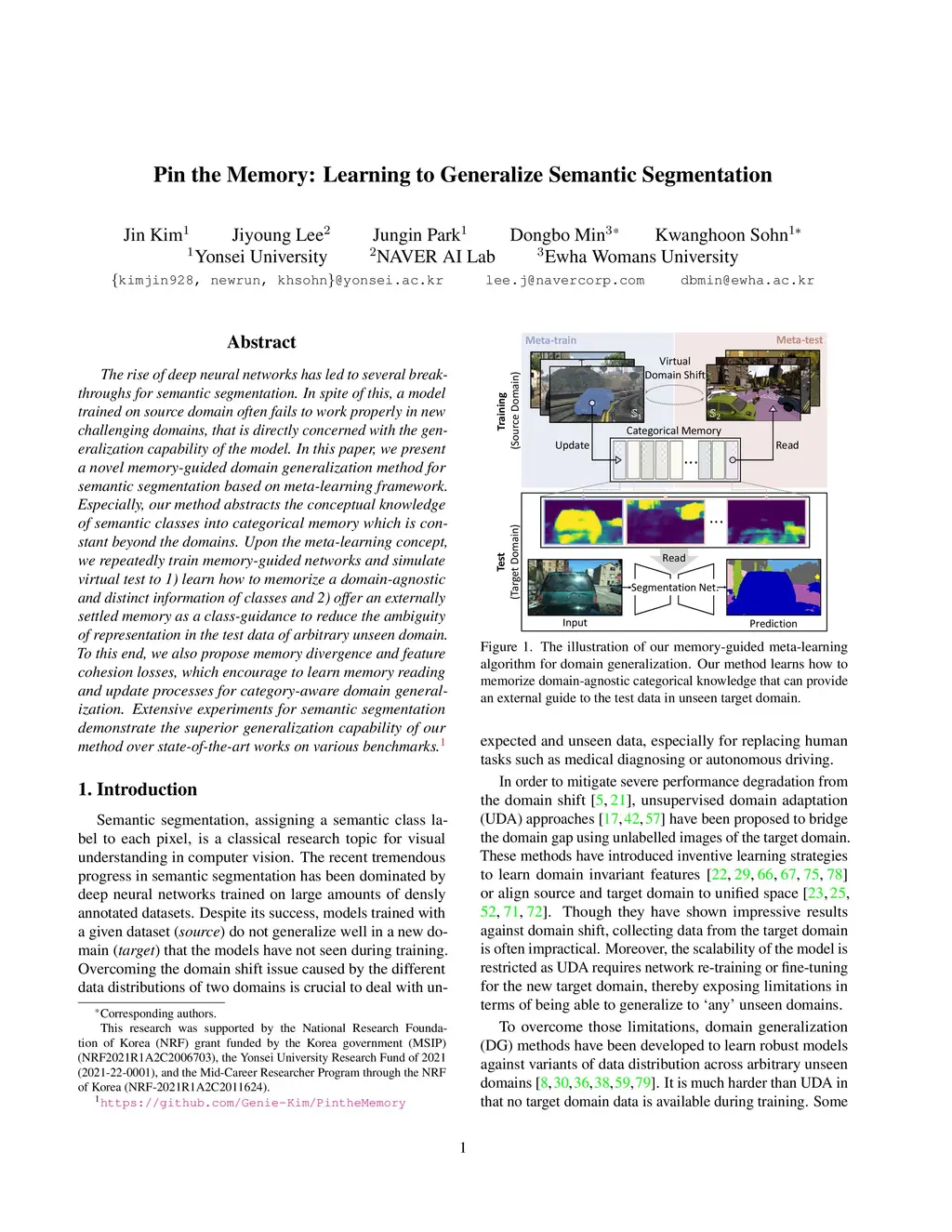 Pin the Memory: Learning to Generalize Semantic Segmentation