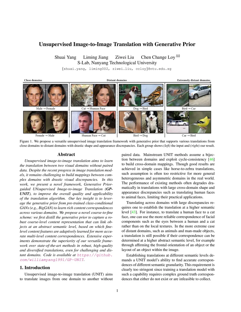 Unsupervised image-to-image translation aims to learn the translation between two visual domains without paired data. Despite the recent progress in image translation models, it remains challenging to build mappings between complex domains with drastic visual discrepancies. In this work, we present a novel framework, Generative Prior-guided UNsupervised Image-to-image Translation (GP-UNIT), to improve the overall quality and applicability of the translation algorithm. Our key insight is to leverage the generative prior from pre-trained class-conditional GANs (e.g., BigGAN) to learn rich content correspondences across various domains. We propose a novel coarse-to-fine scheme: we first distill the generative prior to capture a robust coarse-level content representation that can link objects at an abstract semantic level, based on which fine-level content features are adaptively learned for more accurate multi-level content correspondences. Extensive experiments demonstrate the superiority of our versatile framework over state-of-the-art methods in robust, high-quality and diversified translations, even for challenging and distant domains.