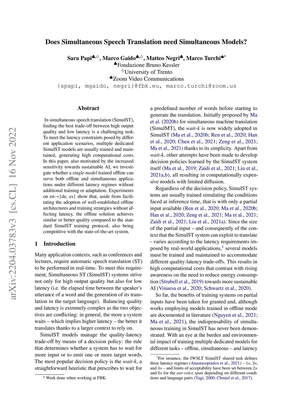 Does Simultaneous Speech Translation need Simultaneous Models?