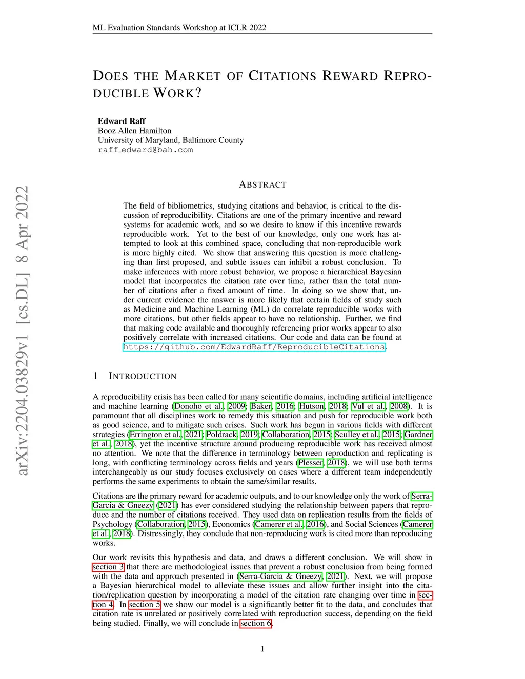 The field of bibliometrics, studying citations and behavior, is critical to the discussion of reproducibility. Citations are one of the primary incentive and reward systems for academic work, and so we desire to know if this incentive rewards reproducible work. Yet to the best of our knowledge, only one work has attempted to look at this combined space, concluding that non-reproducible work is more highly cited. We show that answering this question is more challenging than first proposed, and subtle issues can inhibit a robust conclusion. To make inferences with more robust behavior, we propose a hierarchical Bayesian model that incorporates the citation rate over time, rather than the total number of citations after a fixed amount of time. In doing so we show that, under current evidence the answer is more likely that certain fields of study such as Medicine and Machine Learning (ML) do correlate reproducible works with more citations, but other fields appear to have no relationship. Further, we find that making code available and thoroughly referencing prior works appear to also positively correlate with increased citations. Our code and data can be found at https://github.com/EdwardRaff/ReproducibleCitations .