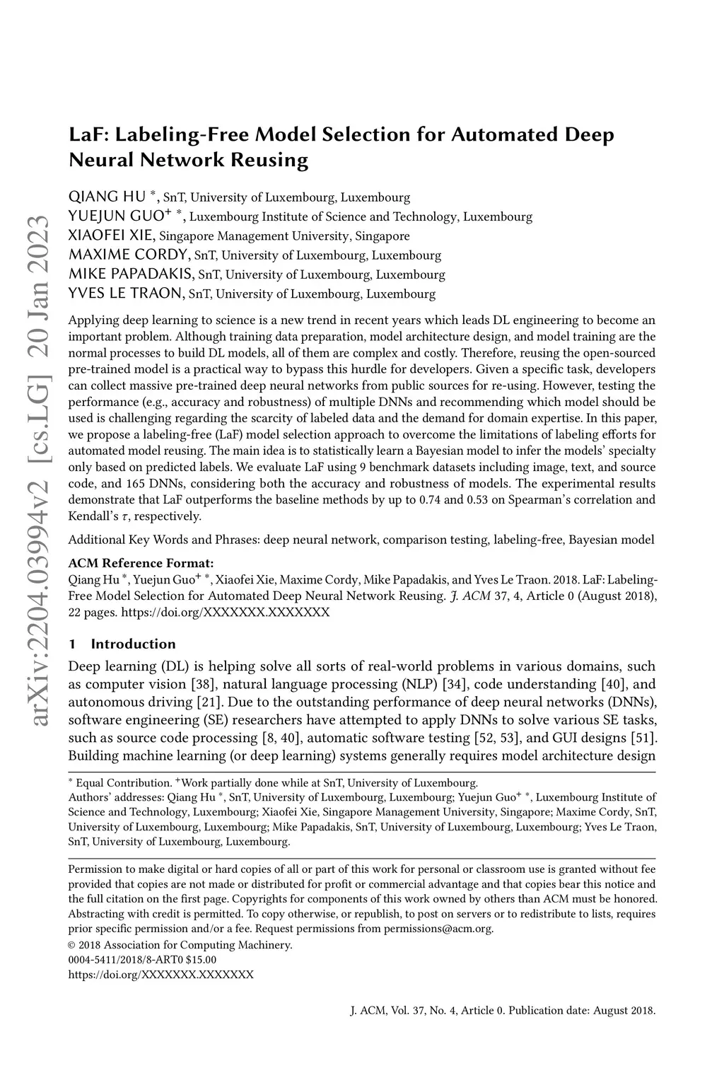 LaF: Labeling-Free Model Selection for Automated Deep Neural Network