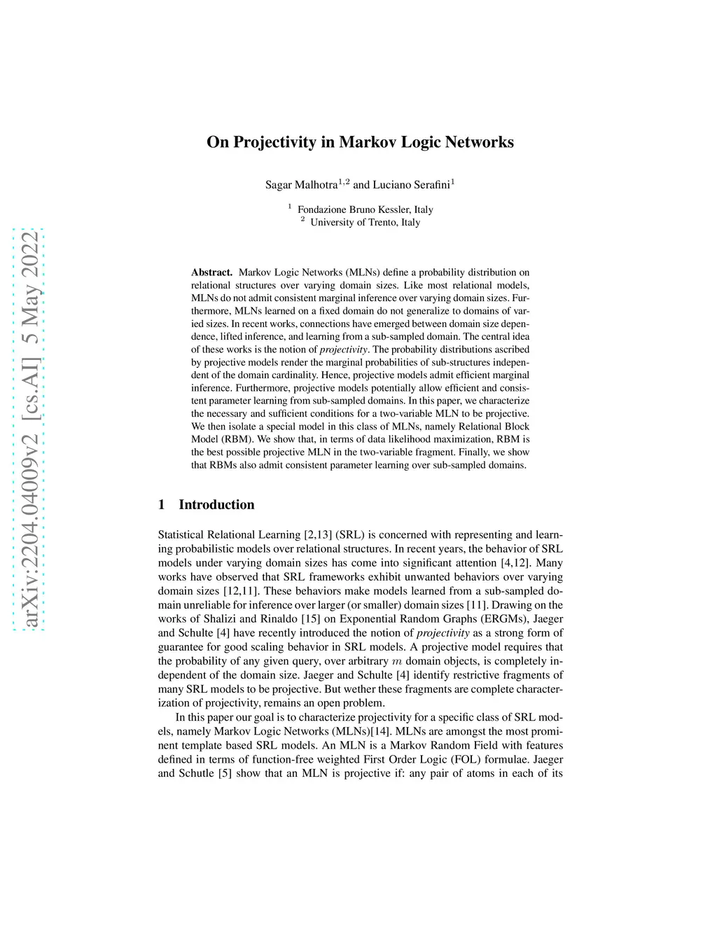 Markov Logic Networks (MLNs) define a probability distribution on relational structures over varying domain sizes. Many works have noticed that MLNs, like many other relational models, do not admit consistent marginal inference over varying domain sizes. Furthermore, MLNs learnt on a certain domain do not generalize to new domains of varied sizes. In recent works, connections have emerged between domain size dependence, lifted inference and learning from sub-sampled domains. The central idea to these works is the notion of projectivity. The probability distributions ascribed by projective models render the marginal probabilities of sub-structures independent of the domain cardinality. Hence, projective models admit efficient marginal inference, removing any dependence on the domain size. Furthermore, projective models potentially allow efficient and consistent parameter learning from sub-sampled domains. In this paper, we characterize the necessary and sufficient conditions for a two-variable MLN to be projective. We then isolate a special model in this class of MLNs, namely Relational Block Model (RBM). We show that, in terms of data likelihood maximization, RBM is the best possible projective MLN in the two-variable fragment. Finally, we show that RBMs also admit consistent parameter learning over sub-sampled domains.