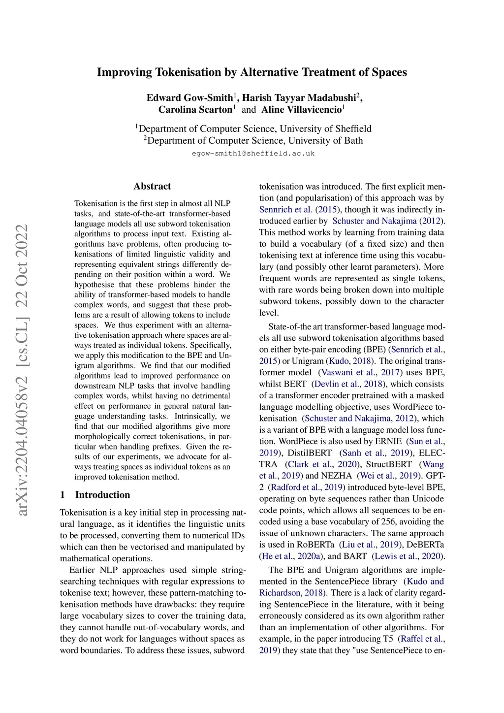 Tokenisation is the first step in almost all NLP tasks, and state-of-the-art transformer-based language models all use subword tokenisation algorithms to process input text. Existing algorithms have problems, often producing tokenisations of limited linguistic validity, and representing equivalent strings differently depending on their position within a word. We hypothesise that these problems hinder the ability of transformer-based models to handle complex words, and suggest that these problems are a result of allowing tokens to include spaces. We thus experiment with an alternative tokenisation approach where spaces are always treated as individual tokens. Specifically, we apply this modification to the BPE and Unigram algorithms. We find that our modified algorithms lead to improved performance on downstream NLP tasks that involve handling complex words, whilst having no detrimental effect on performance in general natural language understanding tasks. Intrinsically, we find our modified algorithms give more morphologically correct tokenisations, in particular when handling prefixes. Given the results of our experiments, we advocate for always treating spaces as individual tokens as an improved tokenisation method.